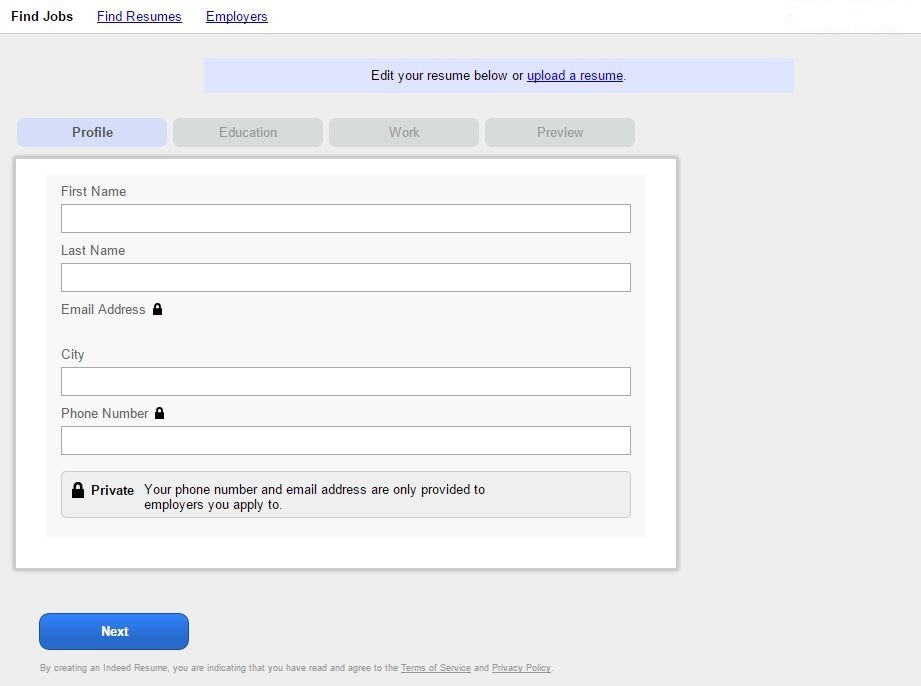 (CREATE YOUR RESUME on the website - STEP 1 of 5)